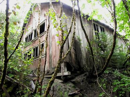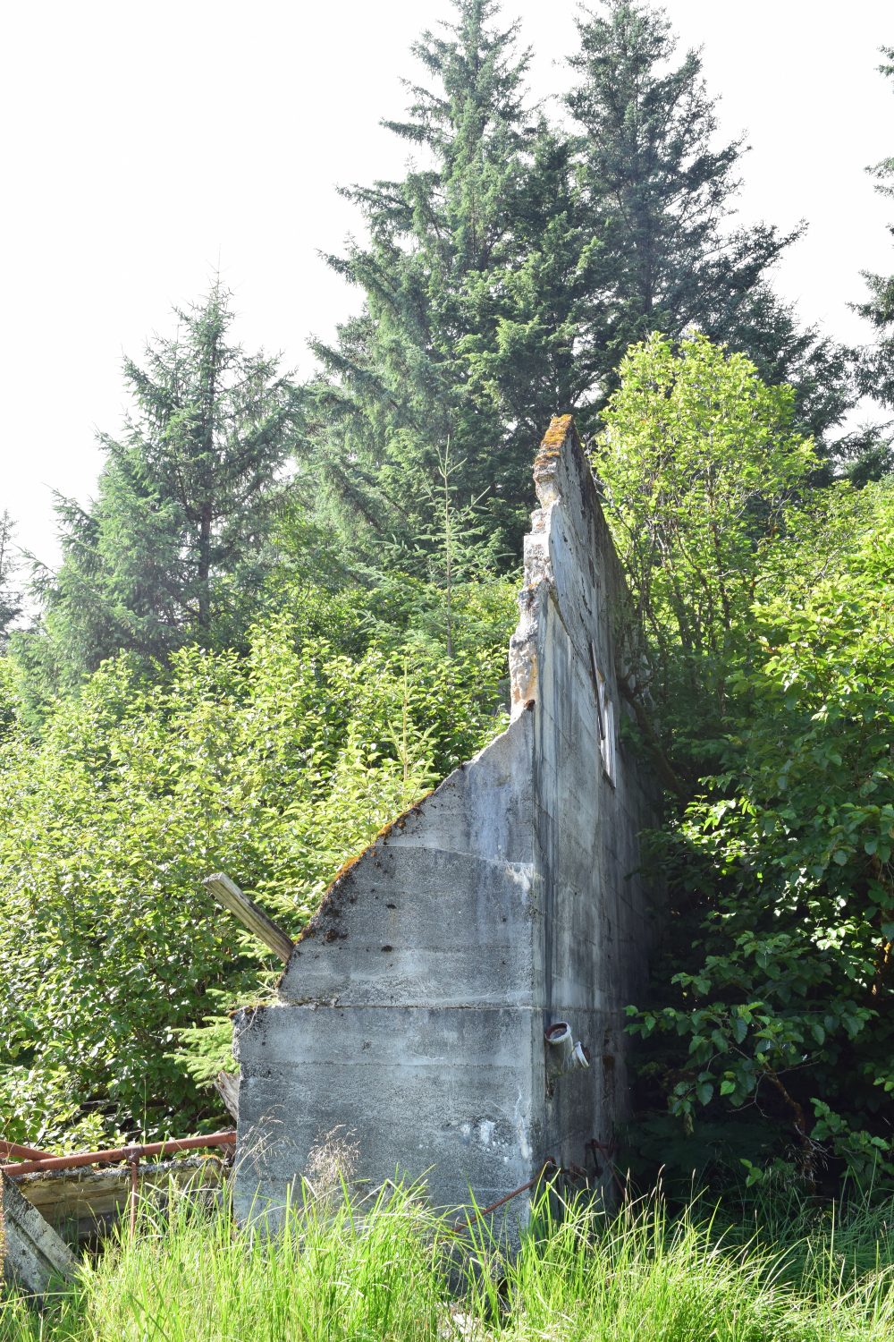 As instructed we looked for the dilapidated pilings of the old loading wharf along the shoreline and sure enough, there it was. From there we could see other ruined buildings but the mine entrance itself was half way up the mountainside linked by an overgrown pathway through the dense forest that right