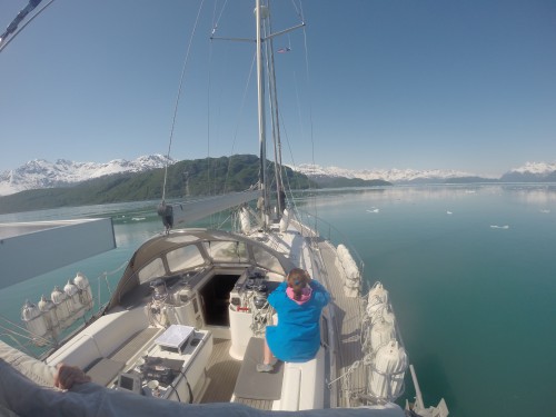 I called the park rangers who said we could have a permit to enter the wilderness in two days time. Leighton also called and arranged a permit for Morning Star; we also learned that Chirpy, a Canadian sailboat we’d gotten to know well through Leighton would also be in the upper reaches of the territory located along the Canadian Yukon border, the four of them onboard would be ashore ice climbing on the extremities of the Reid Glacier. Perfect. We arranged to try to all meet up in the Reid Inlet anchorage right beside the glacier. Louise was excited and keen to get ashore, she’s an intrepid traveller in her own right with her travel job taking her into many wild parts of the world. I was in my element, my youngest daughter and I had always hung out well together and for me this was now real quality time. Is there any better way for a father to spend time with his daughter?