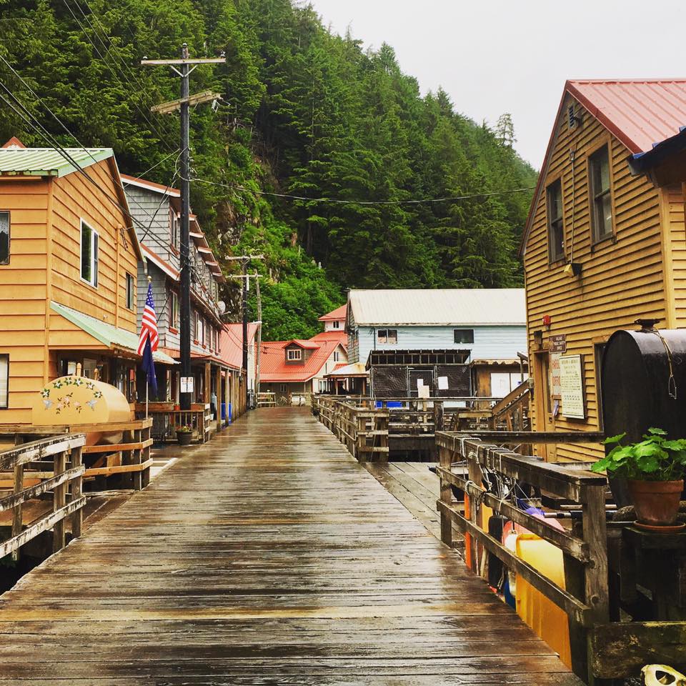 Pelican is a picturesque gem. Nowhere else in the world will you find anything like Pelican. Built entirely upon timber stilts with boardwalks set into the mountainous hillside of Lisianski Inlet, the small township is stunningly remote being accessible more often only by seaplane, perhaps by boat from Juneau or sometimes Sitka. We ourselves pulled into the old style harbour during the late evening with the relentless rainstorm beating down upon us. We somehow dried ourselves out then headed directly for ubiquitous Rose’s Bar, where the drinking inhabitants once again proved themselves exceptionally welcoming by hanging around two young English girls like flies around a jam pot. But, of course, the nuthead locals declared themselves well proud that an English sailboat had sailed all the way to Pelican just to visit them… their genuinely open friendliness was both meaningful and respectful. Sadly though, we only had enough time to stay around a short while, time was now exceptionally tight so we departed the next morning to make yet another attempt to enter Elfin Cove before making our way back to Hoonah.